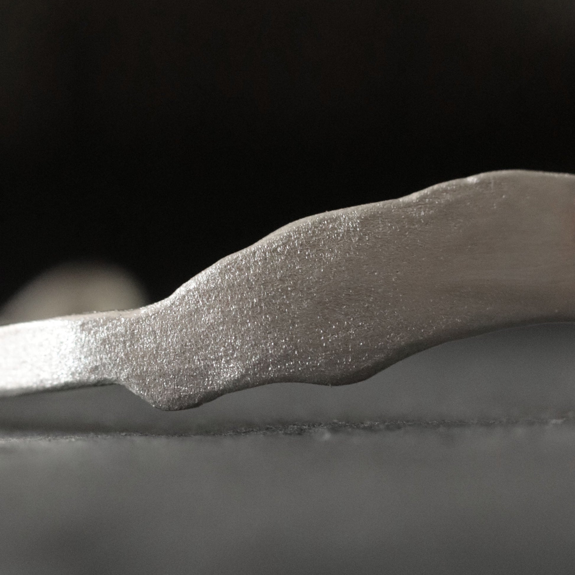 Handcrafted from recycled silver, this cuff has a smooth, organic shape with gently flowing edges. Its surface shifts from polished to frosted to satin, reflecting the quiet transformations we all move through - from clarity to softness, from light to shadow.